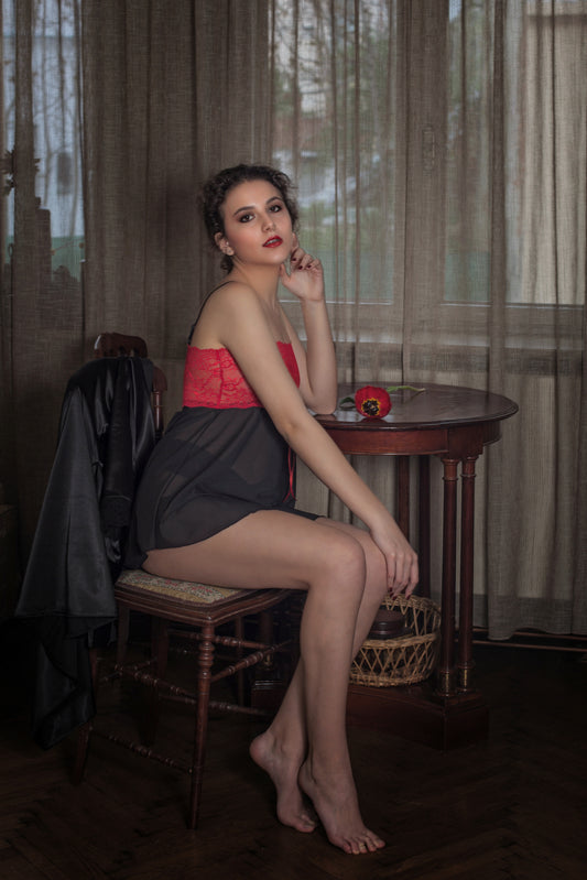 Set Baby Doll, chilot tanga, dantela, negru,BLD by Exclusive