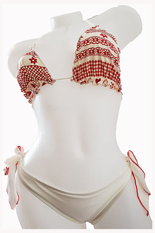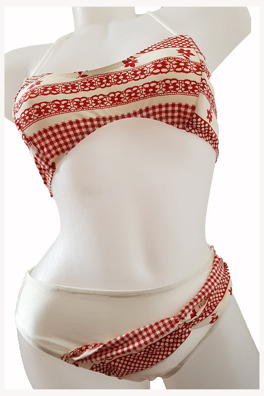 Costum de baie dama doua piese, dungi alb-rosu, SORINA, BLD by Exclusive