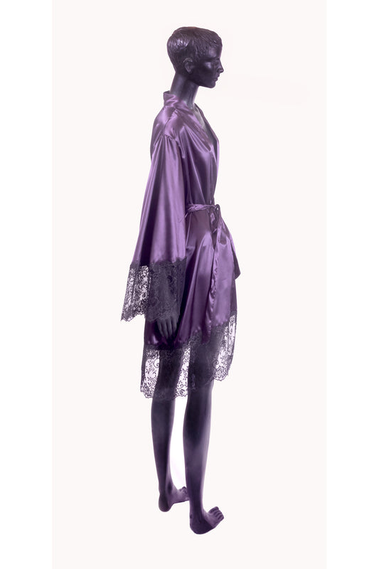 Halat dama satin soft mov, dantela tip chantilly, ROMANCE 2, BLD by Exclusive